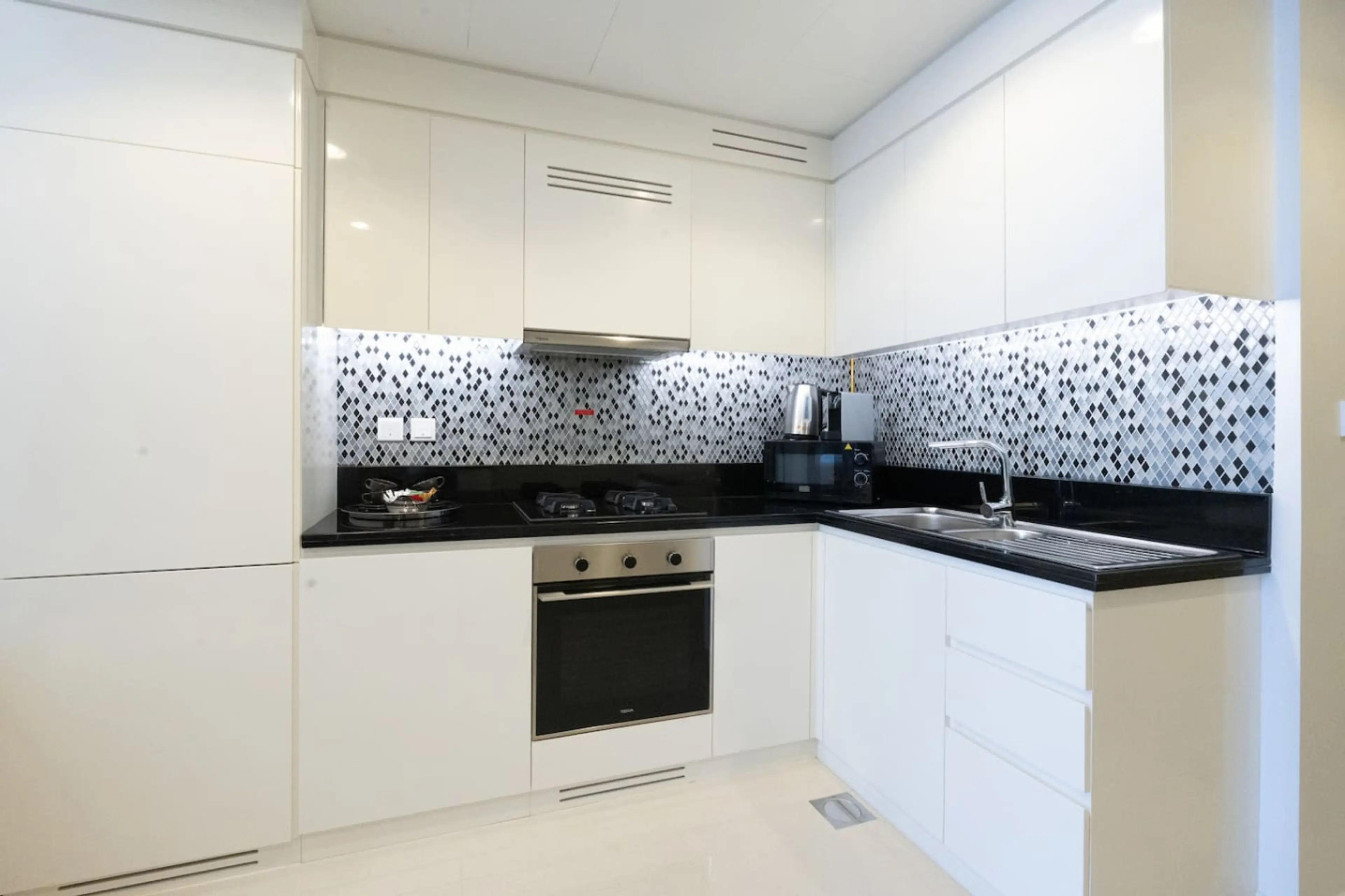 Modern 2-bedroom apartment in Business Bay, close to Burj Khalifa, Dubai Mall, restaurants and cafés. Bright open-plan living/dining area, fully equipped kitchen, Smart TVs, balcony with city views. Master suite (king bed), second bedroom (queen bed). Free parking, high-speed Wi-Fi (250 Mbps), Pool...