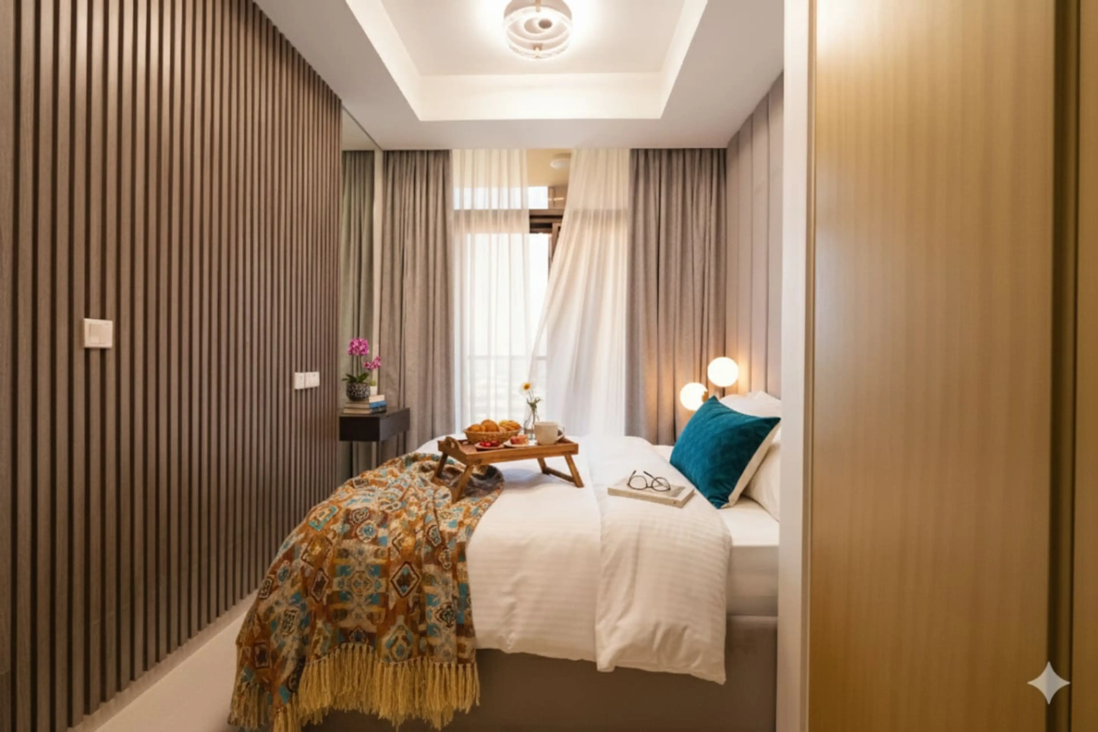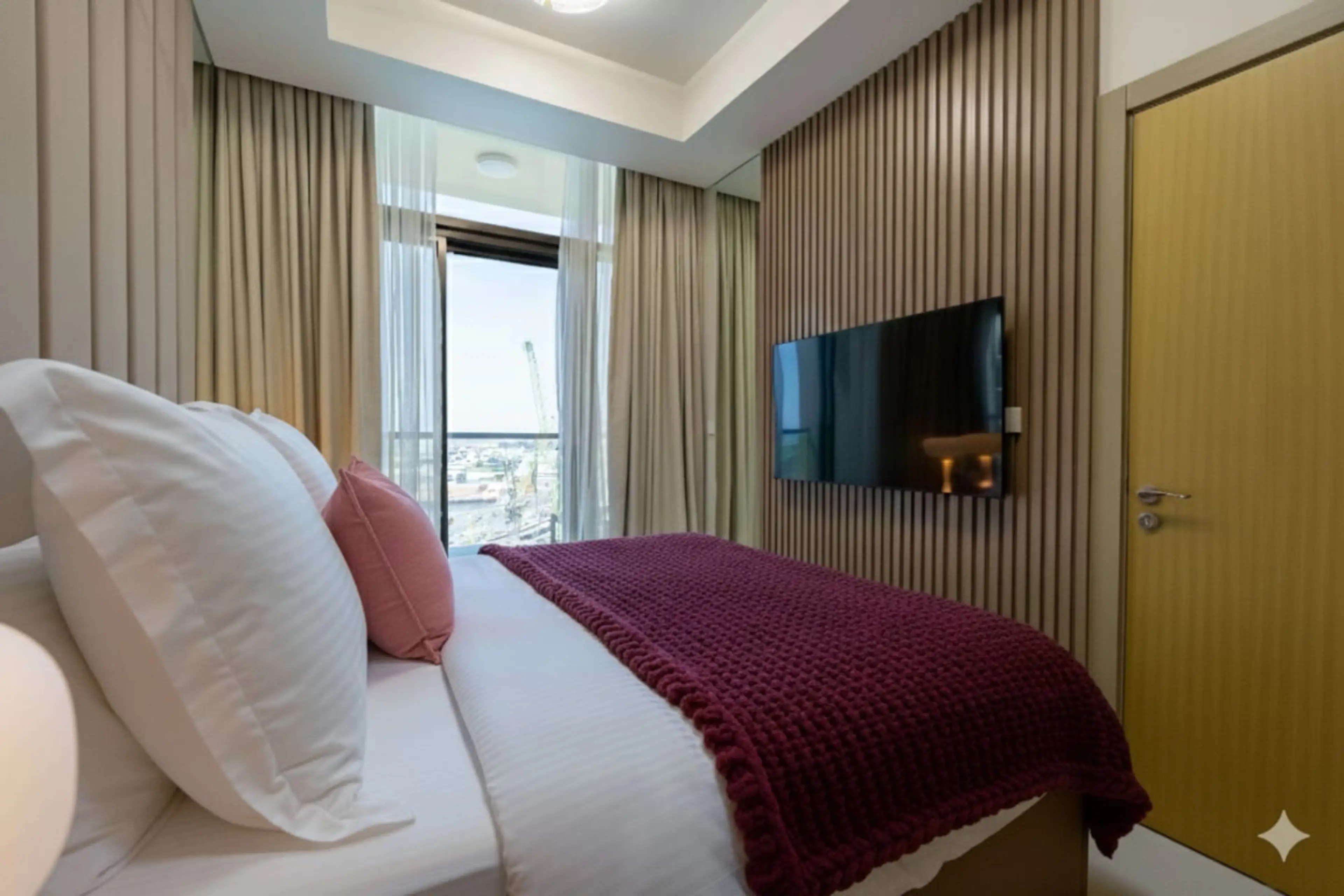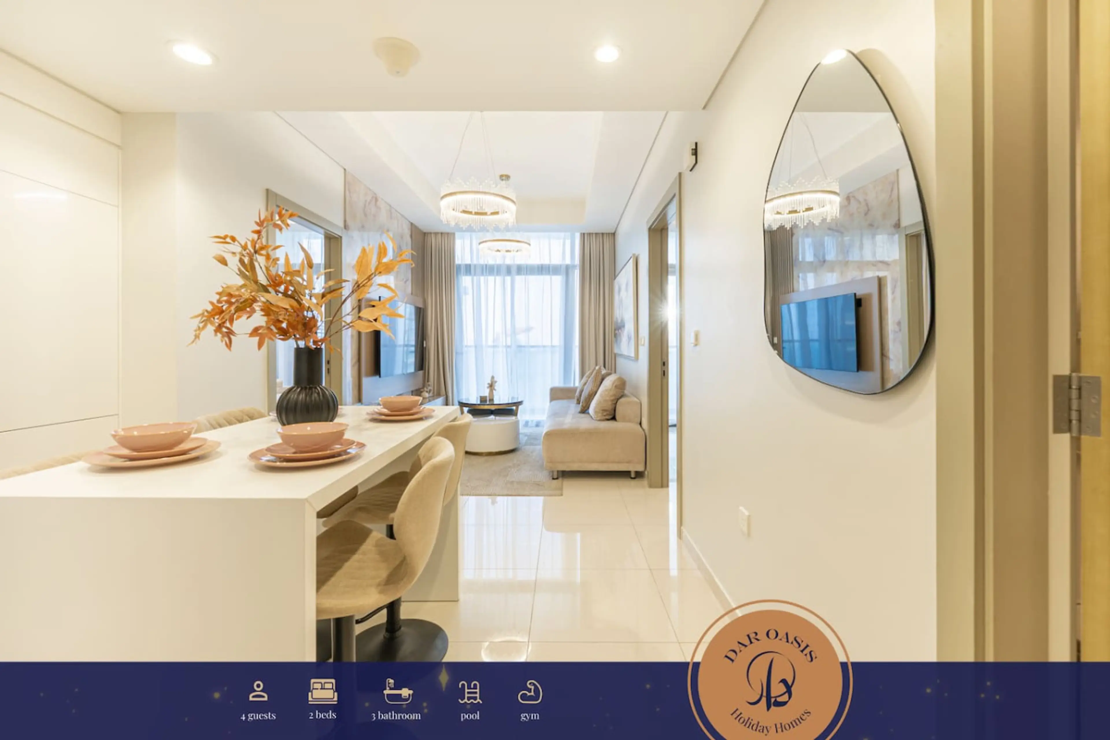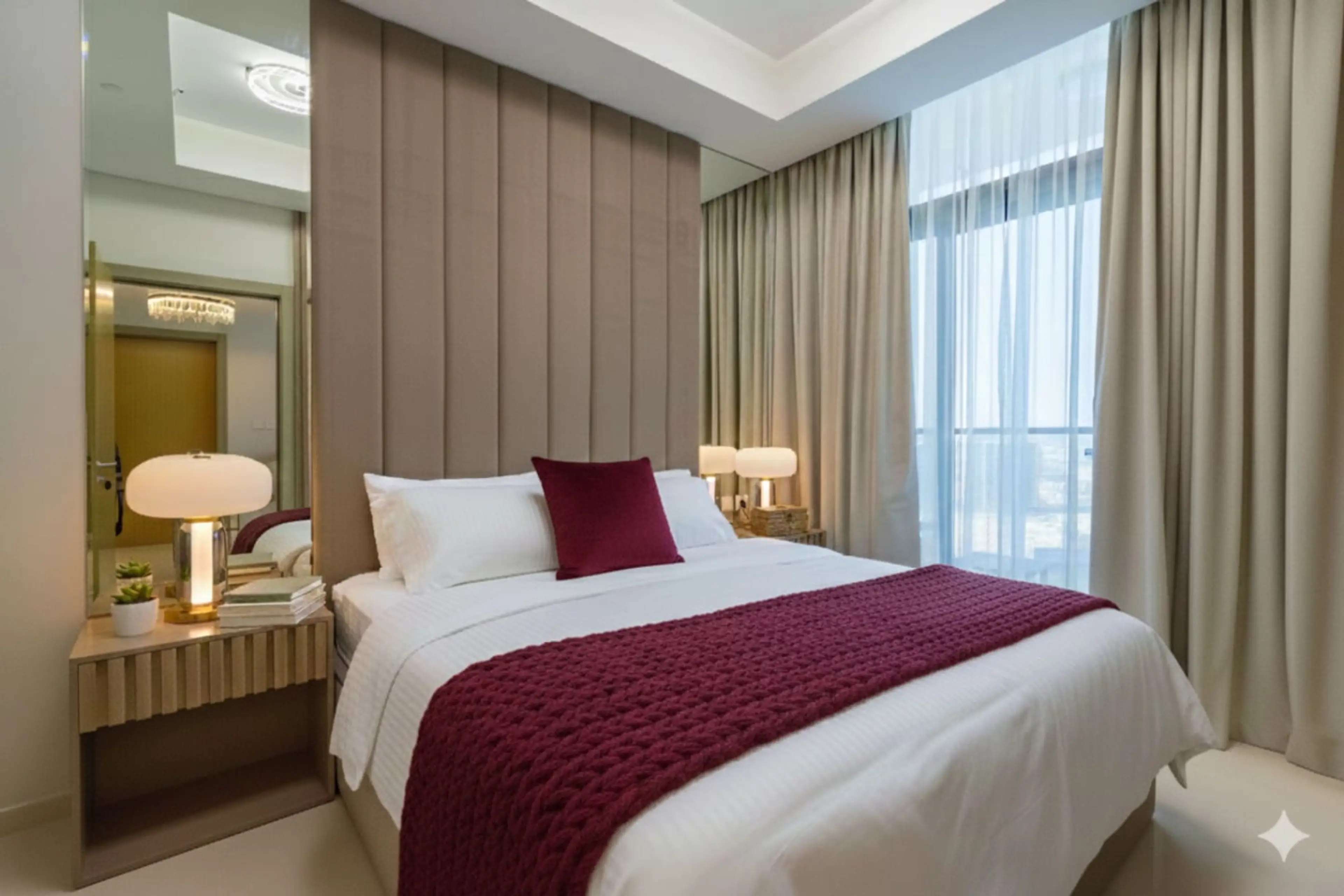 Modern 2-bedroom apartment in Business Bay, close to Burj Khalifa, Dubai Mall, restaurants and cafés. Bright open-plan living/dining area, fully equipped kitchen, Smart TVs, balcony with city views. Master suite (king bed), second bedroom (queen bed). Free parking, high-speed Wi-Fi (250 Mbps), Pool,...