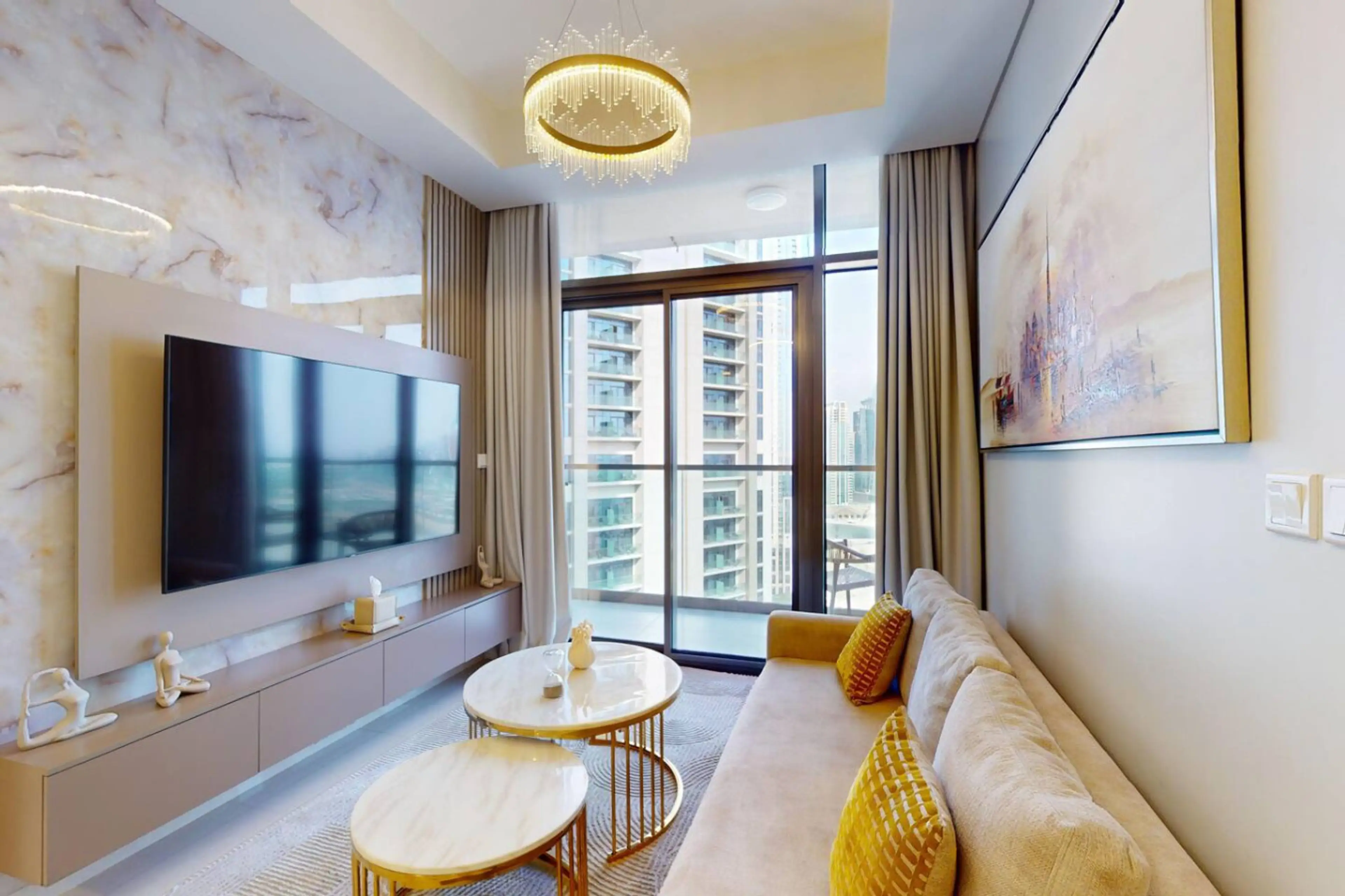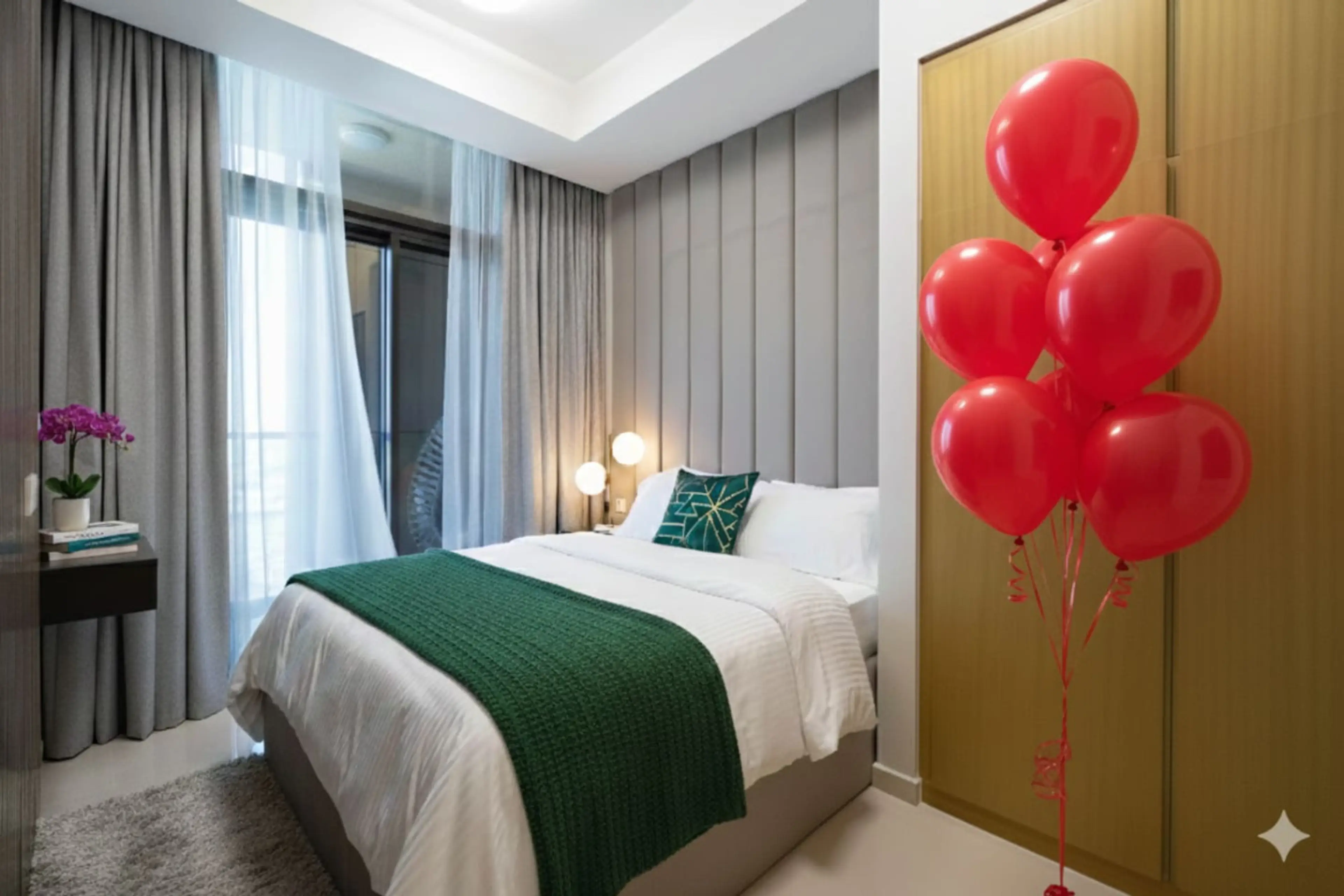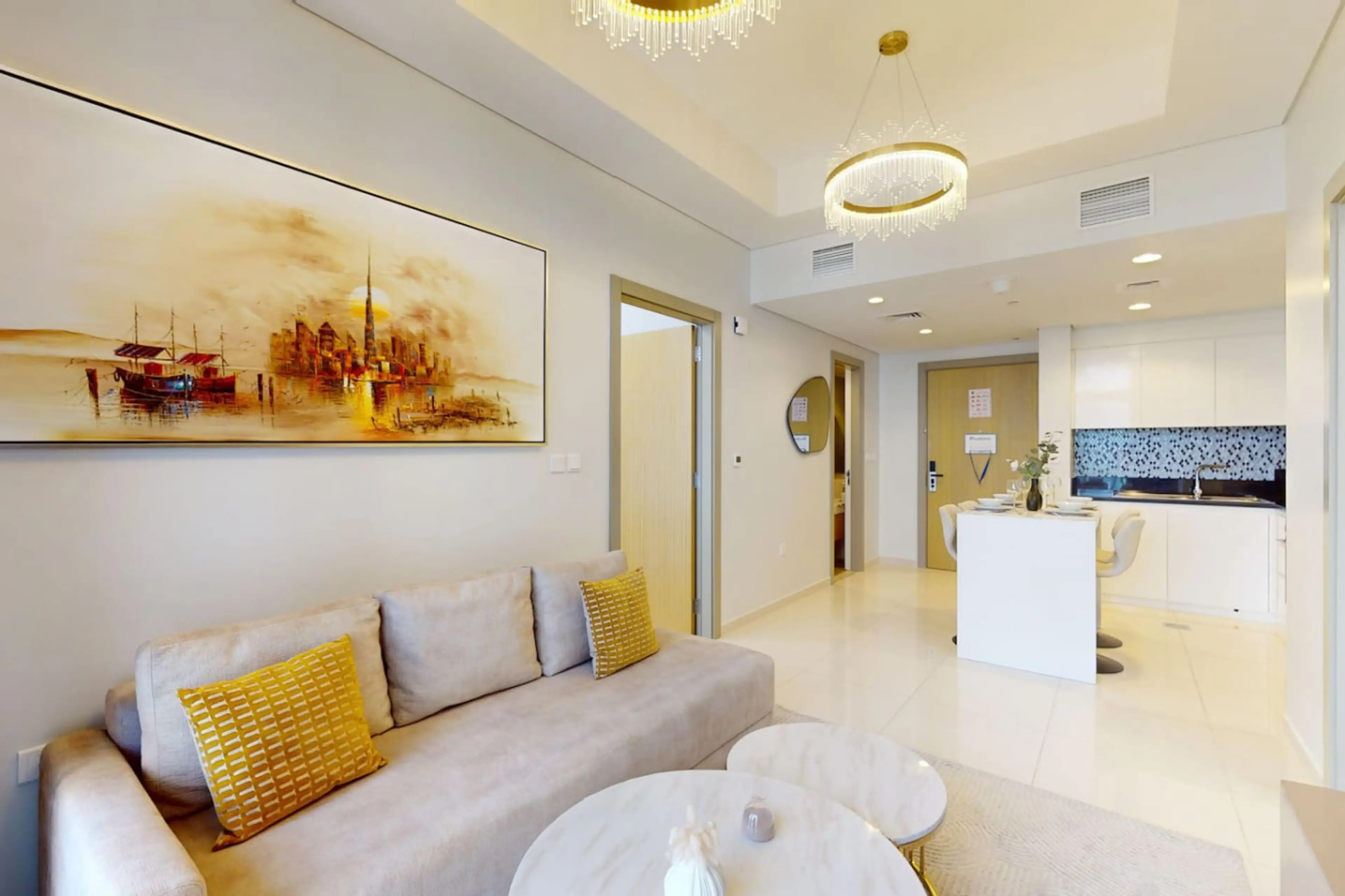 Modern 2-bedroom apartment in Business Bay, close to Burj Khalifa, Dubai Mall, restaurants and cafés. Bright open-plan living/dining area, fully equipped kitchen, Smart TV, balcony with city views. Master suite (king bed with en-suite bathroom), second bedroom (queen bed). Free parking, high-speed W...